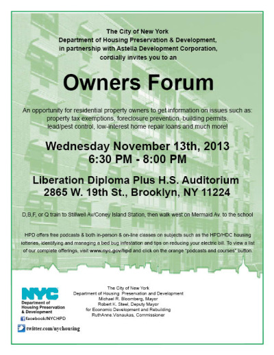 Most recently, the Alliance and other community organizations assisted New York City Small Business Services on their outreach for the Storefront Improvement Program. SBS has invested funds in over a dozen businesses on Mermaid to renovate and improve their storefronts, strengthening Coney Island’s business corridor. Coney Island Hospital has secured a site for their health clinic and has begun work to open a location on West 17th Street in 2015. This morning, the Mayor visited a house on Neptune Avenue that Habitat for Humanity is rebuilding for a long-time Coney Island resident. These accomplishments are just some of the many that Coney Island has seen over the past year and are signals of continued progress to come.